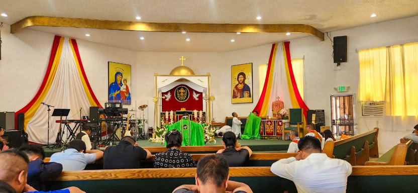 | 10: DIVINA LITURGIA CON MIEMBROS DE LA PARROQUIA SAN MIGUEL ARCÁNGEL, EAST RANCHO DOMÍNGUEZ. |