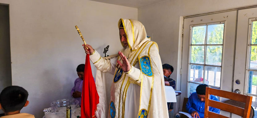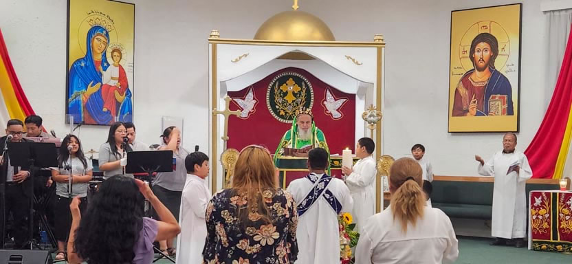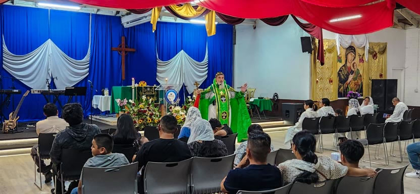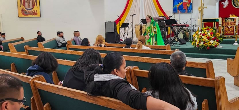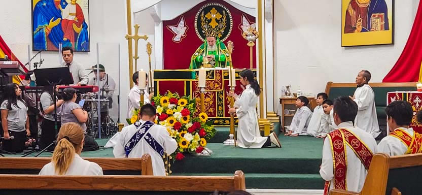 La visita a la comunidad Santa María de Guadalupe de Moreno Valley, Riverside, culminó con la celebración de la divina liturgia, la cual fue presidida por el arzobispo.