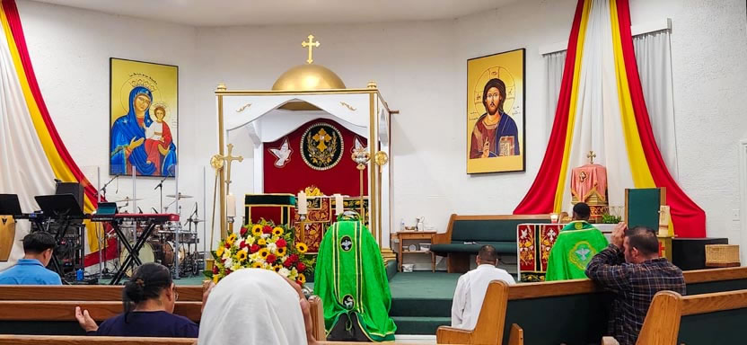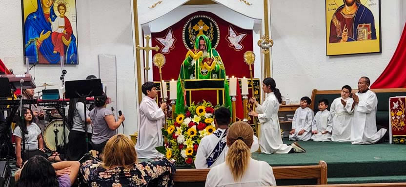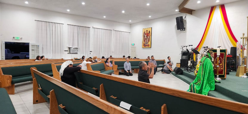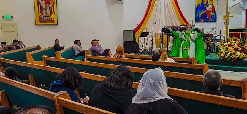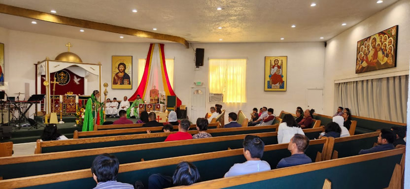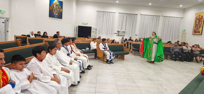 La asamblea litúrgica, reunida el domingo 7 en la sede parroquial de East Rancho Domínguez, encontró su plenitu en la celebración de la divina liturgia.