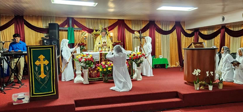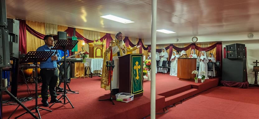 La visita a la comunidad La Esperanza concluyó con la celebración de la divina liturgia, presidida por el arzobispo y con la participación activa de los hermanos.