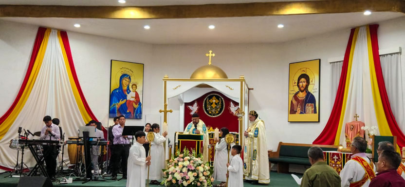 | 01: DIVINA LITURGIA EN LA SEDE DE LA PARROQUIA SAN MIGUEL ARCÁNGEL, EAST RANCHO DOMÍNGUEZ. |
