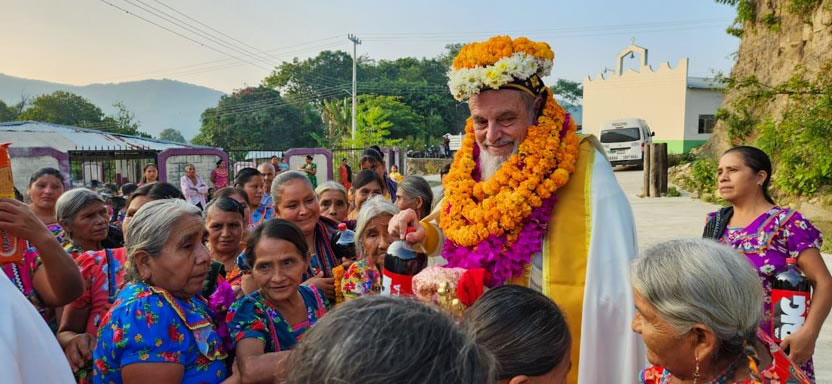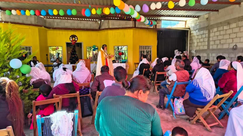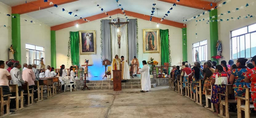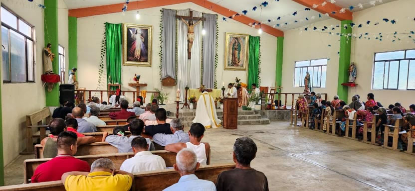 El mismo día, por la tarde, se tuvo el encuentro y la celebración litúrgica con los fieles. Se trata de comunidad de origen Tolteca, que hablan el idioma Náuatl.