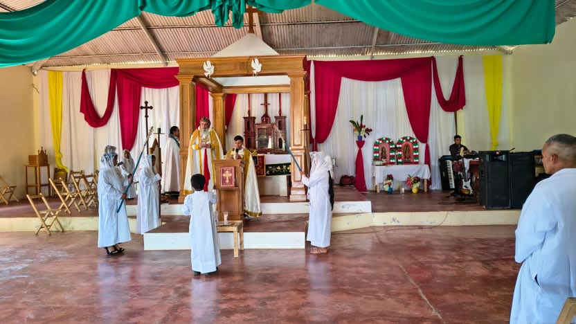 | 21: DIVINA LITURGIA EN LA SEDE PARROQUIAL BUEN PASTOR, AMPARO AGUA TINTA, MARGARITAS, CHIAPAS. |