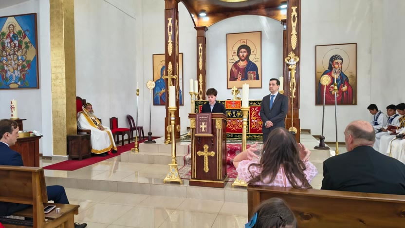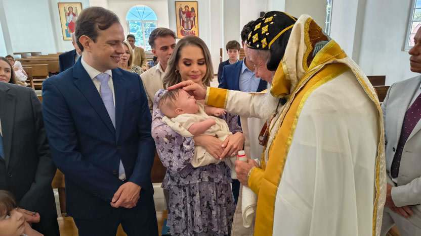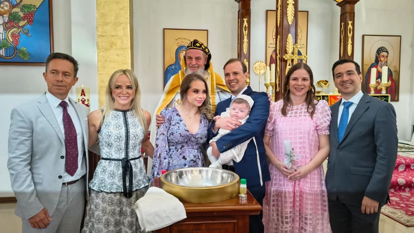 Hace un parte de meses, nació Mikel Aguirre, sobrino nieto del arzobispo, hijo de Andrés Eduardo y Cecilia, miembros de nuestra santa iglesia, siro ortodoxa.