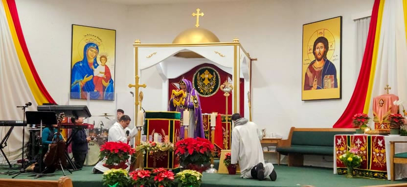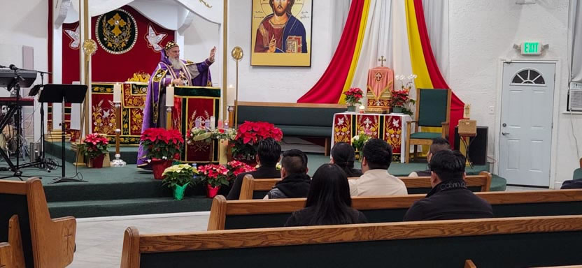 La visita sabatina a la comunidad Santa María de Guadalupe concluyó con la celebración de la divina liturgia, presidida por el arzobispo y contando con la participación activa de los hermanos.