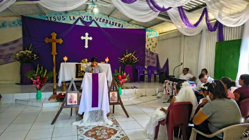 Una hermana fue elegida y preparada para ejercer el ministerio de distribución de la comunión en una de las comunidades de la iglesia del pueblo de Nahuizalco.