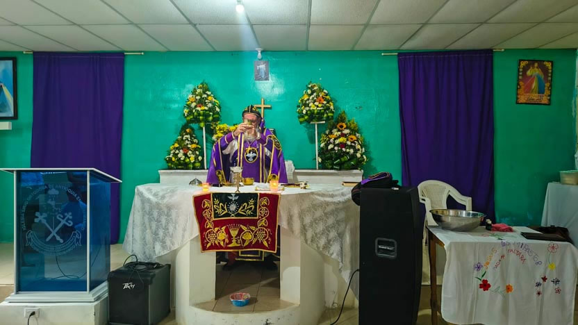 La visita a la comunidad se concluyó con la celebración de la divina liturgia, la cual fue presidida por el arzobispo y concelebrada por los padres Edwin y Luis Alfredo.