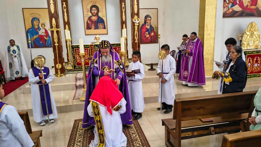 El domingo 28 de diciembre, por la mañana, Mor Santiago Eduardo presidió las celebraciones litúrgicas en la comunidad La Roca de los Siglos de Thomasboro.