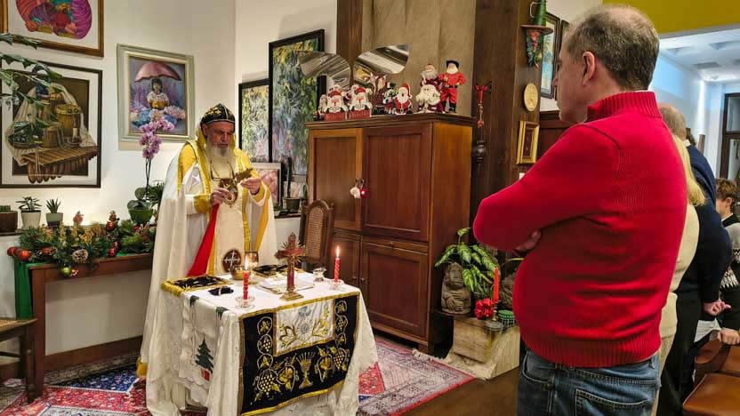 Siguiendo con una tradición que data de más de 25 años, la Noche Buena, el arzobispo celebró la divina liturgia con familiares y amigos cercanos, en la residencia de su hermana.