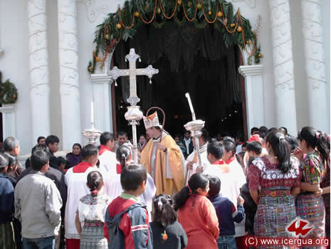 El 17 de Diciembre tuvieron el primer contacto con ICERGUA los representantes de una Comunidad de los Guates, San Juan Sacatepéquez, a la cual, por su compromiso espiritual, le había sido negada la administración de los sacramentos. Está formada por unos 300 adulto y, con jóvenes y niños, llega a unos 1000 miembros. El obispo llegó a visitarles el martes 23 por la noche para dialogar con toda la comunidad y el 25 de Diciembre se celebró una solemne misa. Era la primera Eucaristía que tenían en casi cuatro años. Las lágrimas de gozo se entremezclaban con el entusiasmo que irradiaban los rostros de los hermanos, al ver que el Señor había escuchado su clamor y que les enviaba aquello por lo que tanto habían sufrido y orado. Para el 11 de enero se tiene planificada la celebración de bautismos y la institución de ministros de la comunión, para que puedan tener permanentemente la presencia del Santísimo Sacramento. |