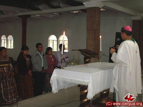 El día 26 por la tarde, en la comunidad de Salquilito Nebaj, nuestro obispo presidió la Eucaristía en la que varias parejas contrajeron matrimonio y numerosos niños hicieron la primera comunión. |