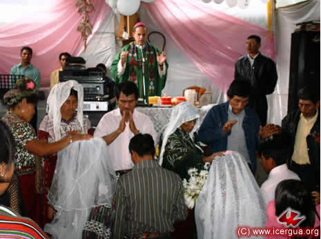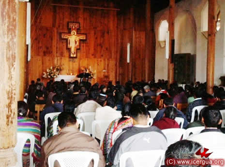 Desde Enero de 2008 y con el apoyo incondicional de nuestro obispo, se instalaron en San Juan Comalapa las autoridades indígenas, organiza-das como "Alcaldía Indígena". La razón de la visita fue celebrar la Eucaristía en Acción de Gracias por todas las bendiciones recibidas, así como compartir el almuerzo y tener una reunión para compartir cuestiones de mutuo interés. El resultado de la reunión fue muy hermoso. Tanto las Autoridades Indígenas como el Obispo asumieron el compromiso de seguir en contacto, para apoyar, cada quien desde su propio campo de competencia, el proceso de dignificación de la Comunidad Indígena de San Juan Comalapa. |