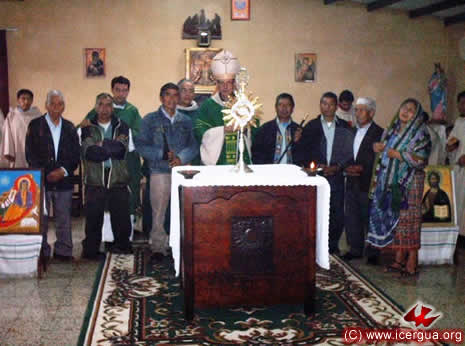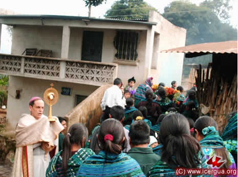 El sábado 11 por la tarde, el obispo presidió una solemne procesión con el Santísimo Sacramento, seguida de la celebración de la Eucaristía, en la Comunidad de Pajomel, Santa Cruz la Laguna, Sololá. La ocasión de la celebración fue conmemorar el tercer aniversario de la alianza que hizo la comunidad y que implicó, también, la llegada del Santísimo Sacramento. |