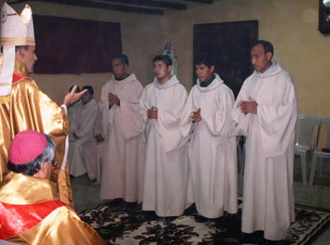 Amadísimos hermanos, ustedes han sido elegidos para recibir el orden sagrado del subdiaconado, incorporándose definitivamente, a la Comunidad Nazaret. Es muy impor-tante que comprendan cuidadosa-mente lo que esto implica, pues, por el orden sagrado que reciben, su vida quedará total y perpetuamente consagrada al servicio de Dios y de su pueblo. Además, ustedes asumen el compromiso, con la ayuda del Señor, de mantener, para siempre, el celibato por el Reino de Dios. Por lo mismo, es importante que antes de acceder a este sagrado orden, manifiesten ante el Pueblo de Dios, su opción por asumir libre y seriamente los compromisos inherentes al mismo. (Del ritual de ordenación para subdiáconos)