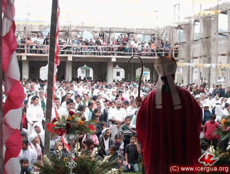 En la foto de arriba: Momento de la homilía tenida por nuestro obispo, ante la multitud.