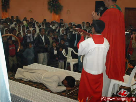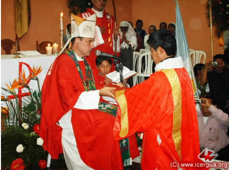 El Domingo 26, en la Iglesia de Belén, Santa Eulalia y con la participación de unos 2500 hermanos, se celebró la ordenación diaconal del sub-diácono Luís Felipe Corimanya. Luís Felipe es originario del Perú, aunque lleva ya seis años de formación en Guatemala. |