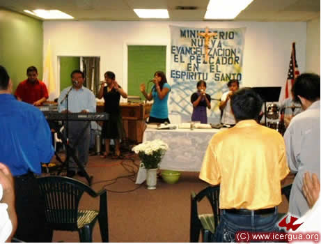 A la derecha los integrantes del otro ministerio existente de la Comunidad El Pescador, mientras hacen el avivamiento entre dos pláticas, el día domingo. |
