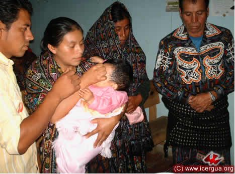 Hacia el medio día el obispo realizó también la primera visita pastoral a la Comunidad de san José Ixcunén, también en el Municipio de La Democracia. Esta comunidad ingresó a la Comunión hace menos de un año. Consta de unas 60 familias, cada una formada por bastantes miembros. Con ocasión de la visita se celebraron bautismos y primeras comuniones. |