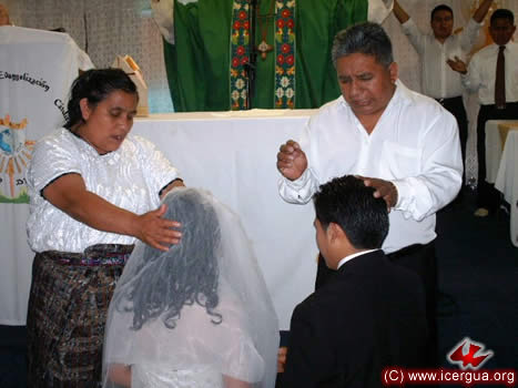 El sábado 19, nuestro obispo comenzó su misión pastoral visitando por primera vez la pequeña comunidad de San Isidro, en el Municipio de La Democracia, Huehuetenango. Entre las diferentes actividades, estuvo la gozosa celebración del matrimonio entre Juan y Carmelina. Ellos tenían muchos años de vivir unidos. Sin embargo, no habían podido regularizar su situación, en primer lugar porque Juan había estado casado canónicamente anterior-mente y, en segundo lugar, porque no tenían los medios para pagar por la celebración de la ceremonia civil. Después de largo estudio, hace algún tiempo se había declarado la nulidad del matrimonio canónico. Con la bondadosa ayuda de una notario ese día se pudo celebrar tanto el matrimonio civil como el religioso. De esa forma, los últimos tienen también la oportunidad de participar de todas las bendiciones. |