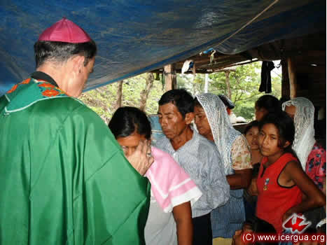 Por la tarde, bajo una fuerte lluvia, el obispo celebró la Eucaristía con la también nueva comunidad de La Mesilla. Esta comunidad comenzó hace pocos meses. A pesar de estar compuesta solamente por 7 familias que totalizan unos 60 miembros, ha logrado ya tener el terreno en el que construirán la iglesia y ha conseguido los instrumentos musicales para tener un ministerio de música. Con su fe y entusiasmo, esperan que pronto la comunidad se multiplicará en el número de sus miembros y que logran realizar sus proyectos. |