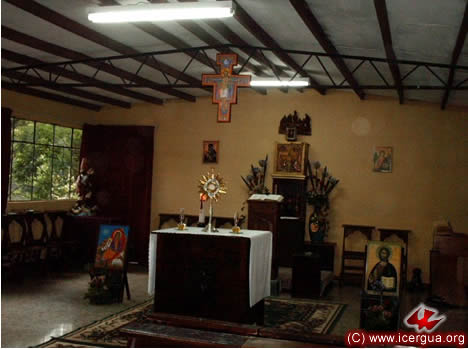 Arriba: Una vista de nuestra Capilla. La exposición del Santísimo Sacramento ocupa un lugar importante dentro del proceso de formación. De esa manera, los seminaristas son urgidos a vivir en actitud constante de escha a la Palabra y de oración. De hecho, cada día se canta la totalidad del oficio divino y se celebra la Divina Liturgia.