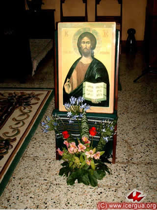 A la derecha: Una vista del el icono de Cristo que se encuentra a la derecha del Altar.