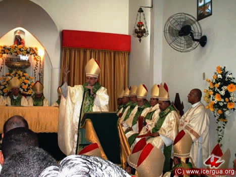 El sábado 31 el obispo presidió la eucaristía en el hermosísimo templo que se está terminando de construir en Santa Cruz Barillas. El área para las celebraciones cuenta con 820 metros cuadrados y, dado que los hermanos en las ocasiones especia-les permanecen de pie, puede dar cabida a más de tres mil participan-tes. Ese día tuvieron lugar dos acontecimientos de suma trascen-dencia: la creación de la parroquia y la ordenación diaconal del sub-diácono José Armando Hernández. |