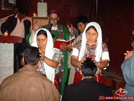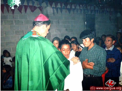 Por la tarde del día 18, el obispo celebró la Eucaristía con la comunidad de Salquilito, en uno de los barrios del centro de Nebaj. Esta comunidad está experimentan-do un acelerado crecimiento. Hay 13 nuevas familias que se han integrado en los últimos tres meses y muchos de los hermanos están recibiendo abundancia de carismas especiales. Dos de ellos han sido reconocidos por la comunidad como "misioneros y evangelizadores". Por lo mismo, se les bendijo para ejerzan esos carismas como ministerios reconocidos por la comunidad. |