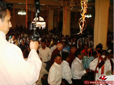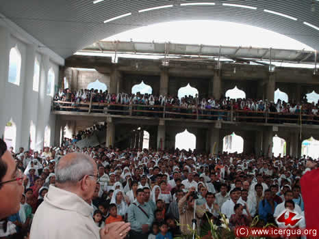 A la derecha: vista de la multitud que acudió a la celebración. Ese día se considera que participaron al rededor de cuatro mil hermanos. La parroquia cuenta en total con 45,000 feligreses, repartidos en unas 70 comunidades.