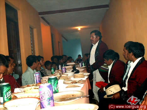 Toda la celebración terminó con un esmerado banquete que ofrecieron los Consejos de las Comunidades. En la foto de la izquierda se puede observar el momento en que uno de los líderes hace el ofrecimiento. |