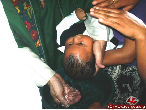A la derecha: Un momento durante la administración del bautismo.