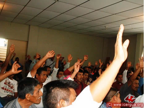 Uno de los elementos que hemos implementado en todas las reuniones de decanato es que las determinaciones más importantes sean tomadas a través de una votación. A la derecha podemos observar a los participantes en el decanato, votando a favor de una de las propuestas que se habían hecho. El parecer de cada decanato, si se trata de asuntos que conciernen solamente a esa zona, tiene efecto después de ser aprobado por la asamblea y confirmado por el obispo. Sobre las cuestiones que se refieren a toda la iglesia, corresponde al obispo tomar en cuenta la decisión de cada uno de los decanatos, para que se tomen las decisiones correspon-d¡entes. |