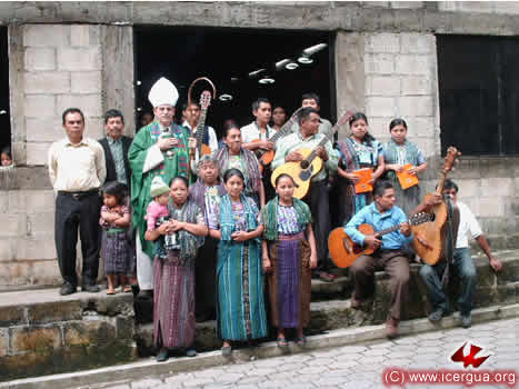 El primero de octubre, Monseñor Eduardo comenzó su actividad misionera con la comunidad Pentecostés de Santiago Atitlán, Sololá. En la foto de la derecha, el obispo, junto a los miembros del ministerio de música y al coro de la comunidad. |