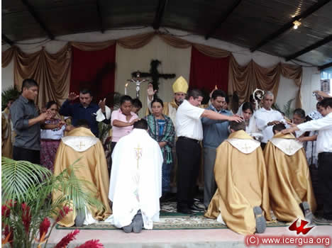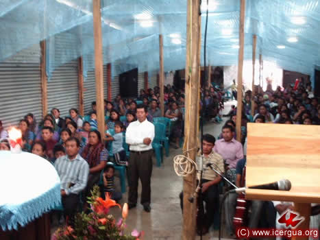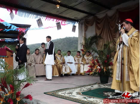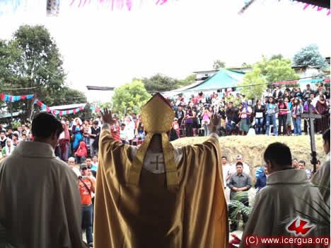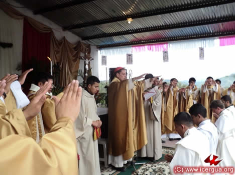 Aunque el día específico del aniversario de ICERGUA es el día 27 de Octubre, en el que se conmemora el haber sido constituidos como Iglesia local, al haber recibido la Sucesión Apostó-lica, por razones prácticas el aniversario fue trasladado para el día 29. Se realizó, como se está volviendo tradición, en el Centro de Formación de Huehuetenango. A pesar de las dificultades de transporte, se contó con la presencia de más de 5000 hermanos, provenientes en su ma-yoría de las áreas vecinas, aunque contanto con representantes de todas las parroquias y reguiones. El punto culminante de la celebración lo marcó la ordenación de cuatro diáconos como presbíteros. |