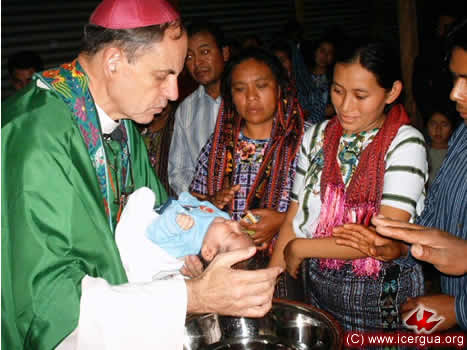 Por la tarde nuestro obispo visitó la Comunidad de San José Ixcunén, en la Democracia, Huehuetenango. Se celebraron numerosos bautis-mos. Sin embargo, entre los más conmovedor fue que 8 parejas, que junto a toda la comunidad entraron a nuestra iglesia hace pocos meses, decidieron que para reafirmar su pertenencia querían ser crismados. La crismación se realizó después de que bastantes niños habían recibido la iniciación cristiana. Los hermanos manifestaron su compromiso de fidelidad a la iglesia y de trabajar incansablemente para dar testimo-nio del Evangelio. |
