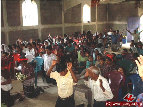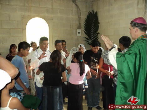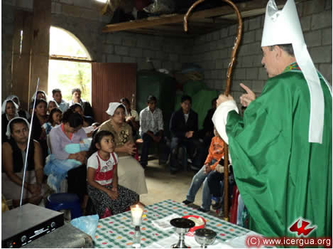 El domingo 17 por la mañana, Monseñor Eduardo visitó la comunidad de ICAL, en Colotenan-go. Se trataba de la segunda visita que hacía, pues la comunidad ha hecho alianza hace apenas un par de meses. Los hermanos se sienten muy animados y están capacitándo-se para poder entregarse a la evangelización. |