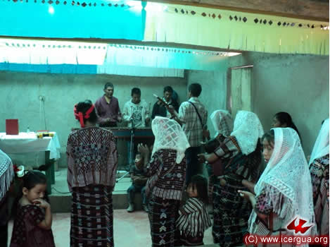 Arriba: Vista del ministerio de la comunidad, que anima con la marimba las diversas celebracio-nes.