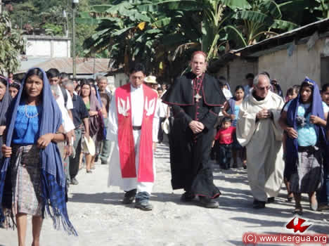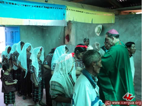 Por la tarde, con solemnidad y cuidadosa preparación, Monseñor Eduardo realizó una visita pastoral a la Comunidad de Buxup, aldea de Jacaltenango. Esta comunidad ha ingresado recientemente a la iglesia. Sus miembros se encuen-tran muy animados y dispuestos a comprometerse activamente en la formación y la evangelización, al mismo tiempo que mantienen su propia identidad espiritual. |