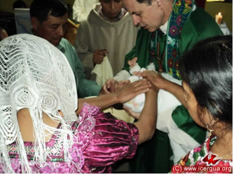 El domingo 3, monseñor realizó una visita a la Comunidad Pajales, de San Antonio Huista, Huehuetenan-go. Esta comunidad ha crecido aceleradamente en los últimos tiempos. De hecho muchos hermanos de otras iglesias al ver la seriedad y el sentido de respeto y libertad con que se trabaja en nuestra iglesia, se han sentido llamados a incorporarse. Con ocasión de la visita se celebró la iniciación cristiana completa de uno de los contrayentes de matrimonio. |