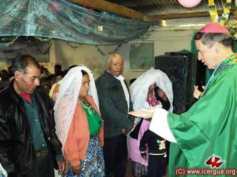 Hacia el medio día del 3, Monseñor Eduardo visitó la comunidad de Santo Domingo, en La Libertad, Huehuetenango. Bajo la coordina-ción del Hermano Juan, que además trabaja a nivel de toda la región, la comunidad ha estado consolidándo-se. Con ocasión de la visita del obispo, se celebró el matirmonio de una pareja y se dio la iniciación cristiana a varios jóvenes. |