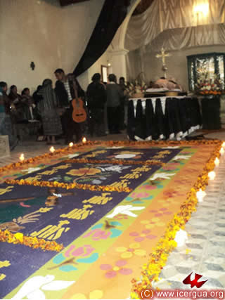 El lunes, primer de noviembre, Monseñor Eduardo comenzó la jornada presidiendo la Eucaristía, como ya es tradición, en el Santuario de San Juan Comalapa, Chimaltenango. En su homilía el obispo insistió en la vocación a la santidad que todos tenemos como cristianos y en el hecho de que en esa ocasión se celebra la Comunión de los Santos, de la cual nosotros ya parcipamos. Participaron en la celebración los miembros de la Cofradía, el Coro San Juan y representantes de las diferentes Congregaciones. |