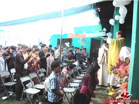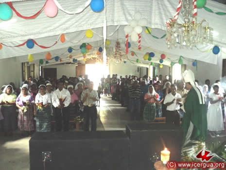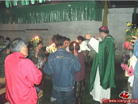Por la noche del 17, Monseñor presidió la Eucaristía en la comuni-dad de Nucá, Barillas, que es atendida pastoralmente por el Padre Marcos Caicedo. El templo ha sido remodelado cuidadosamente y luece muy hermoso. La casa parroquial está casi concluida. El esfuerzo del Padre Marcos y el apoyo solidario de los hermanos, están dando abundantes frutos. |