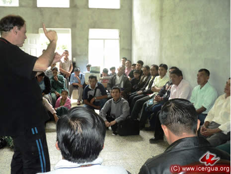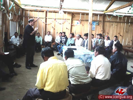 El martes 2 de noviembre, el obispo comenzó la jornada en la Comuni-dad K'anquintik, del Municipio de Nentón, Huehuetenango. Durante la mañana se celebró la reunión de Decanato, con representantes de las seis comunidades católicas renovadas del municipio. Ante algunas dudas e interpretaciones equivocadas, el obispo insistió en que la administración de los sacra-mentos está limitada exclusivamen-te para quienes hacen parte de la iglesia. Especialmente en lo que se refiere a la administración del bautismo de niños; ésta puede hacerse solamente para los hijos de quienes son miembros activos de la iglesia. |