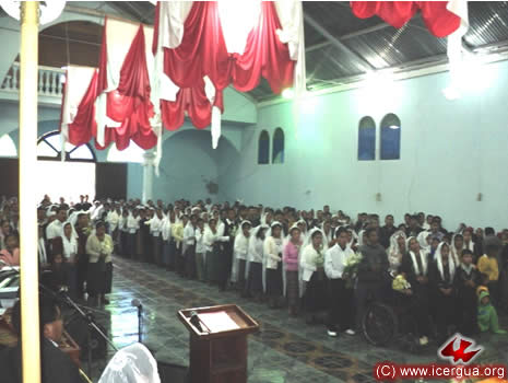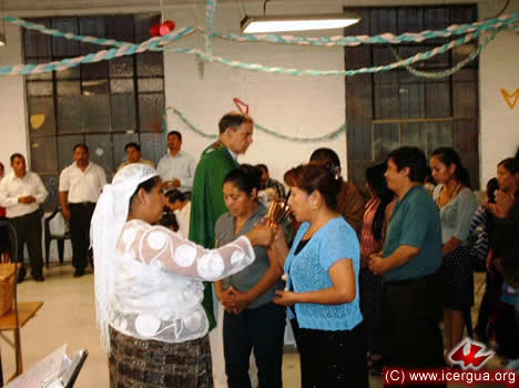 Por la tarde se llevó a cabo la celebración de la Eucaristía, durante la cual un número de jóvenes y señoritas, esmerádamente prepara-dos por los catequistas, bajo la guía del Padre Hugo Patzán, recibió el sacramento de la Confirmación de la Crismación. Los jóvenes, concienti-zados de los compromisos que implica la recepción del sacramento, expresaron su disponibilidad a asumirlos con generosidad y seriedad. |