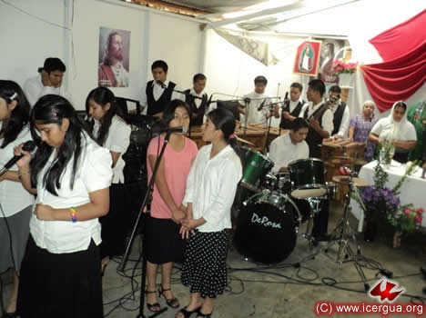 Uno de los ministerios musicales de El Pescador - Parroquia de San Miguel, guió los cantos. Teniendo como base la marimba, interpreta-ron cantos en castellano y en k'an-jobal. |