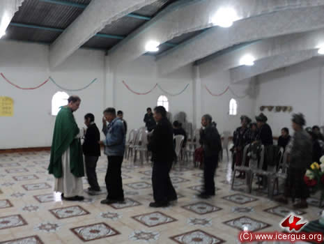 El templo estaba lleno. El gozo era manifiesto. Con ocasión de la visita se realizó la institución de ministros de la comunión y se dejó el Santísimo Sacramento, para que pueda ser distribuido al Pueblo de Dios, en ausencia del presbítero. |