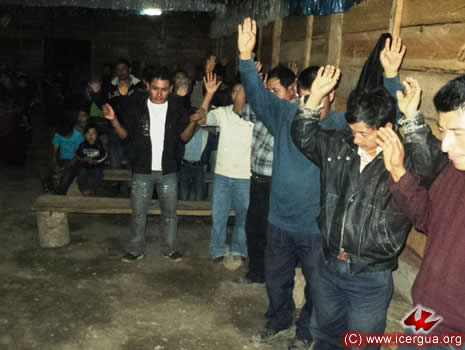 Después del almuerzo, el obispo realizó una visita a la comunidad central de Salquil Grande. Esta comunidad está actualmente en proceso de reestructuración, después de la cresis que pasó re-cientemente y que llevó al naci-miento de una nueva comunidad. El lider de la comunidad es el Hermano Juan Raymundo, quien fue también uno de los fundadores de la Renovación Carismática en el área de Nebaj. |