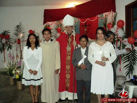 El 20 por la tarde el obispo administró confirmaciones en la Comunidad de San Juan Gascón, la Antigua Guatemala. Durante dos años, el seminarista José Hernández Chávez, ha trabajado en esta área. Después de bastantes esfuerzos, se comienzan a percibir lo frutos positivos. La ceremonia del día 20, marcó un momento importante en la vida y crecimiento de la comunidad. |