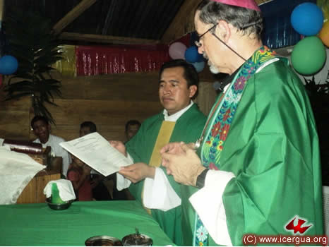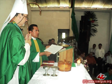 Por la tarde Monseñor Eduardo celebró la Eucaristía en la Comunidad de Quiejolá, San Sebastián H. La sorpresa del obispo fue grande al observar el hermoso templo que están construyendo los hermanos. Hasta hace pocos meses contaba con un pequeño templo de adobe. Ahora han terminado la construcción de la fachada, las paredes interiores y el techo de un templo espacioso y hermoso. Es signo del compromiso que tienen los hermanos de cumplir fielmente la misión que el Señor nos ha confiado. |