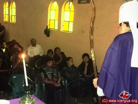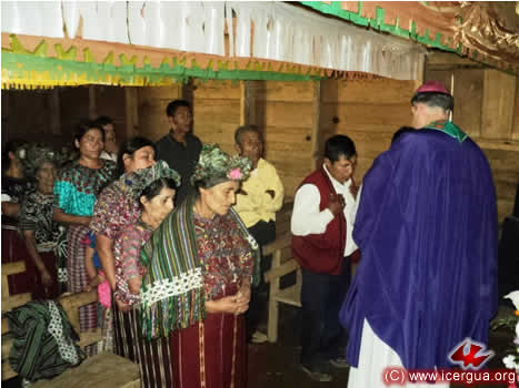 El 16 por la tarde, el obispo llegó hasta la lejana comunidad de Satziván. Ubicada en la cima de altas montañas que hacen parte de Los Cuchumatanes, se accede a la misma por un camino muy difícil. La comunidad ha logrado adquirir una propiedad en la cual muy pronto comenzarán a construir el templo. Por el momento se reúnen en el sótano de la casa de uno de los miembros. En los últimos meses, son numerosas las familias que se han agregado a la comunidad. |